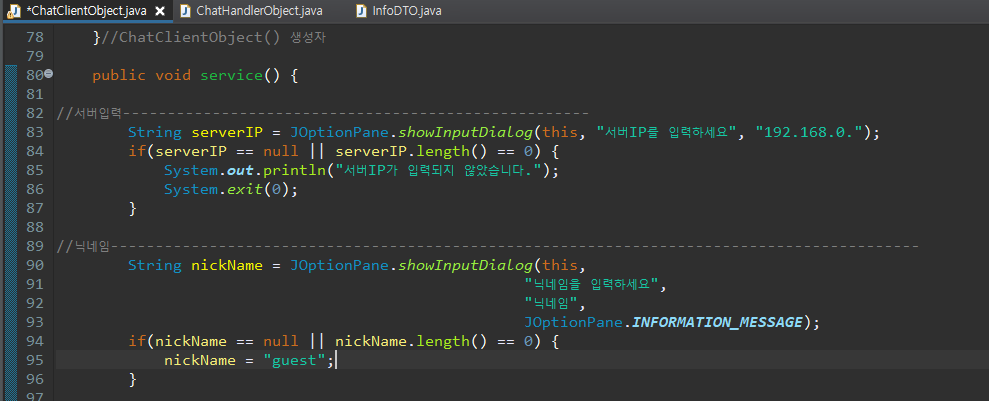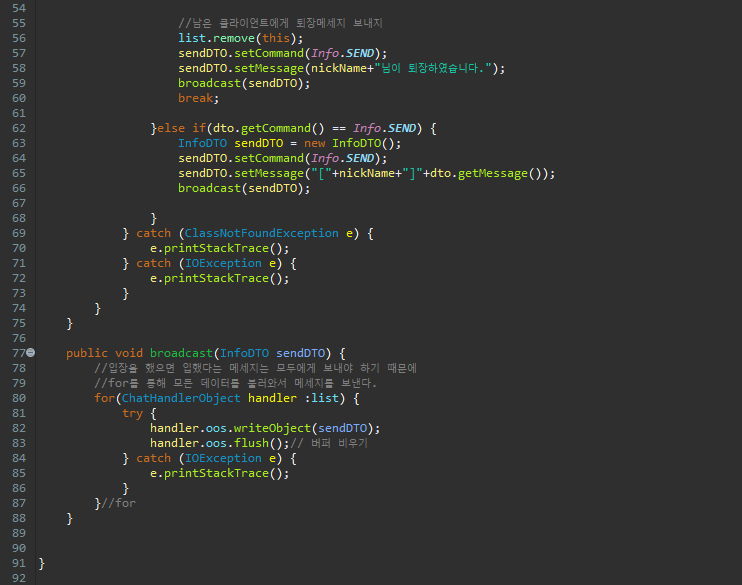 }//while 내가 가만히 있어도 채팅창에 대화는 계속 올라오니깐