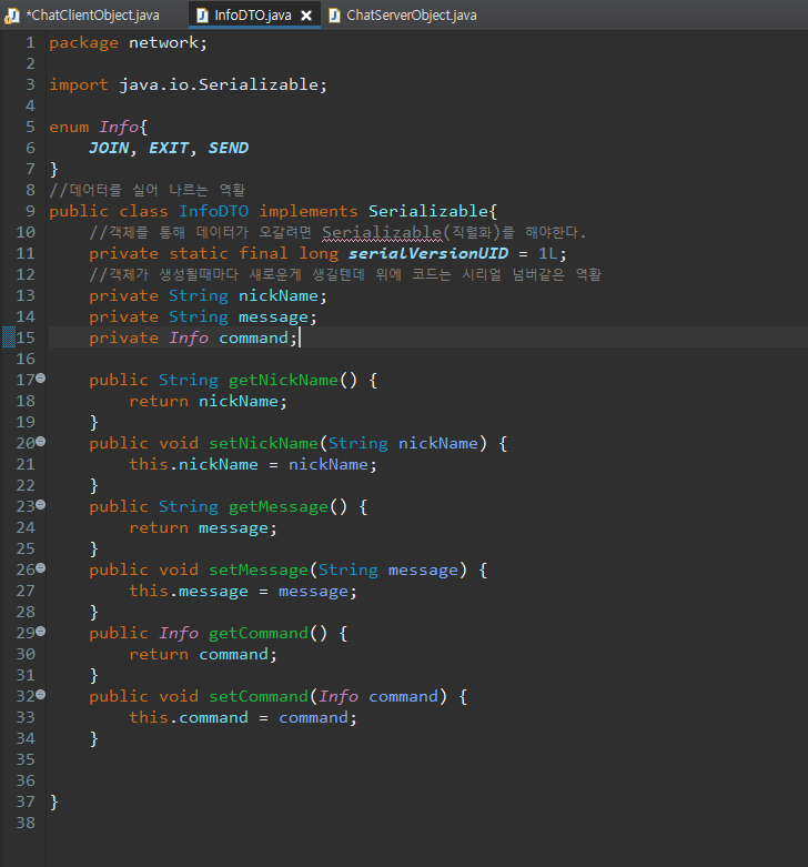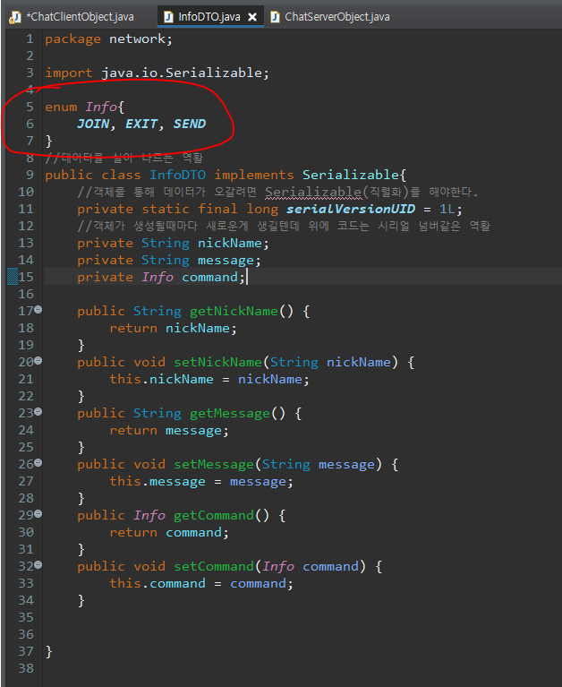 InfoDTO sendDTO = new InfoDTO(); //새로하는 이유는 새로 안한면 아래쪽? 다른 DTO랑 겹친다.