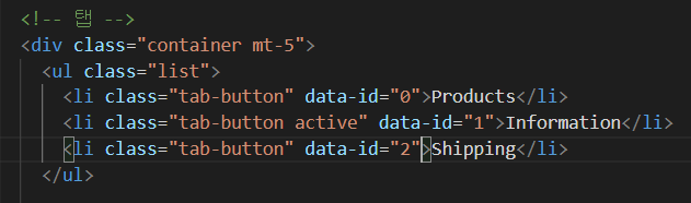 document.getElementByClassName('tab-button').dataset.id; 이렇게 하면 접근할 수 있다.
